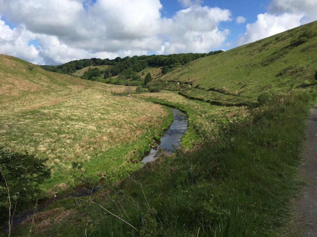 Na een ‘full English breakfast’ (min de worstjes en de black pudding) moest ik dus direct weer die steile heuvel op terug naar de route. Die ging al snel een dal in en liep de hele ochtend verder langs het riviertje de Barle.