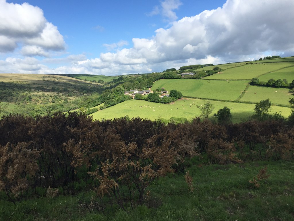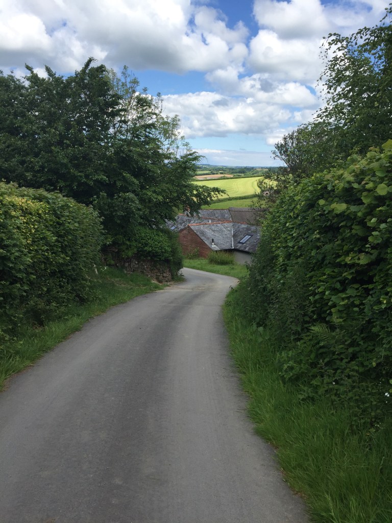 Vandaag, 1 juni had ik een lekker kort dagje rustig lopend door de velden op weg naar Knowstone. Onderweg werd ik ‘aangehouden’ door een boer op een soort bromfiets (het zal een naam hebben, ik weet hem niet). Ze waren koeien van het ene naar het andere weiland aan het verplaatsen en deze koeien gedroegen zich soms wat agressief naar vreemden. (Hij ging het pad dus een stukje af om eventuele wandelaars te waarschuwen) Ik moest op een bepaalde plek even wachten tot de koeien voorbij waren.