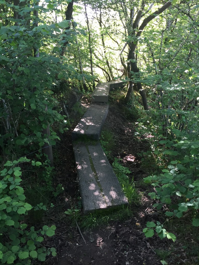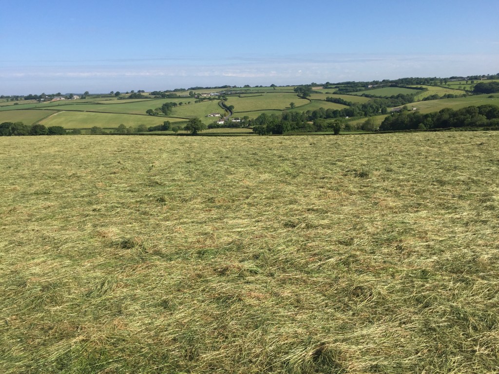 Ik ben inmiddels (2 juni) in midden Devon aangekomen. Het pad gaat over zachtglooiende heuvels waar het net gemaaide gras nog op de grond ligt, dat zalig ruikt en door dichte bossen waar het heerlijk koel is. Door het gebied stromen veel beekjes en in de bossen waar weinig zonlicht komt is het vaak modderig.
