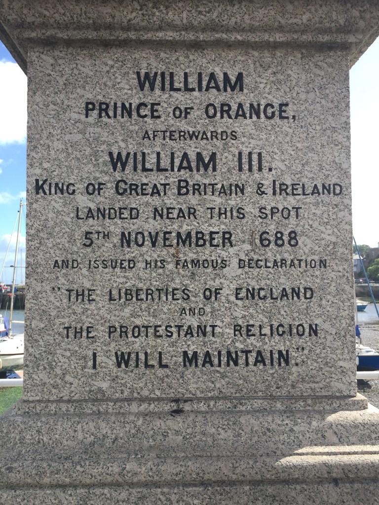 In Brixham bleek Willem van Oranje in 1668 voet aan wal te hebben gezet. Op de kade staat een vreselijk beeld van hem. Volgens Wikipedia staat er op de sokkel ook nog (jawel in het Nederlands): ‘Engelands vrijheid door oranje hersteld’, maar dat heb ik gemist.