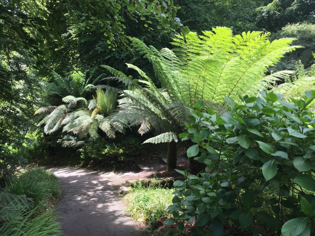Halverwege passeer ik Coleton Fishacre. Een enorm park dat ooit van een rijke adellijke familie was. Zij hebben er een enorme collectie tropische planten in gezet, die hier (veel vocht van zee en van een rivier en veel zon) goed groeien.