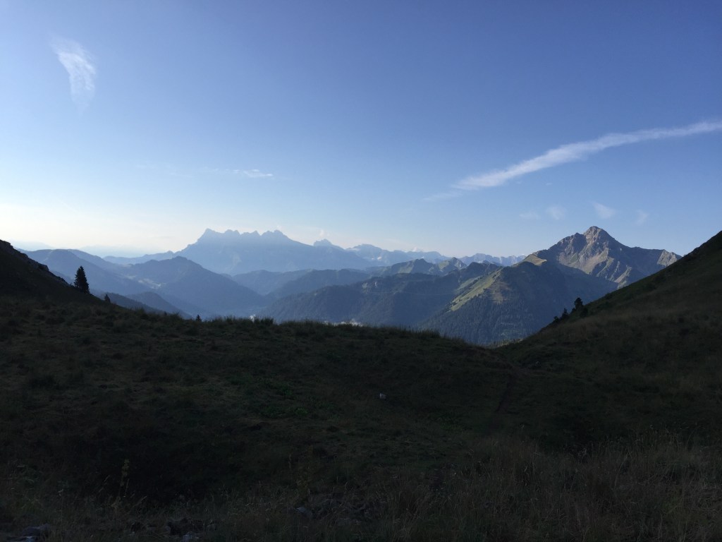 Hier zou de Mont Blanc op te zien moeten zijn, wij zagen een witte top op de achtergrond schemeren. De telefoon (voor de foto’s) haalde dit niet. Maar hij was er!