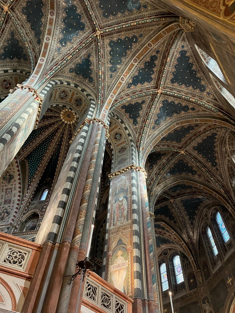 Alweer een enorm gebouw (wat is Padua vroeger rijk geweest en wat woonden er toen al veel mensen, zoveel kerken) De Dom zelf is zeker voor Italiaanse begrippen ‘kaal’. Maar naast de Dom staat de doopkapel. Ja, met zo’n prachtige doopkapel kan de Dom inderdaad wel wat minder.