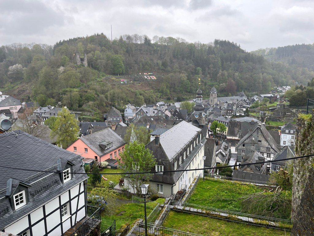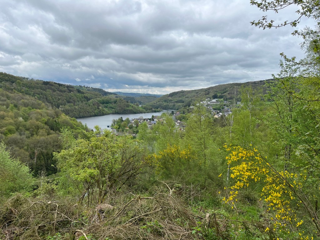 Om vier uur bereikte ik Einruhr, het eindpunt van vandaag. Hier kwam inderdaad… de h in het woord Rur, alhoewel het hotel in de Rurstraat ligt. En verderop heet het meer waar de rivier doorheen stroomt Rursee.