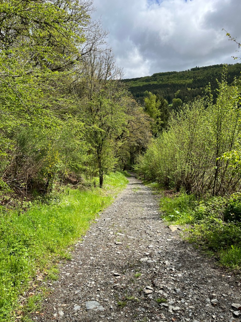En om 12 uur, ik was bijna op de helft, werd het droog. Ik kwam bij een kruising met een weg en zag daar het Eifelsteig teken staan. En kon daar dus de route weer oppakken. En werd het dan eindelijk de beloofde Fels. Ook dat Wasser kreeg zijn bedoelde betekenis: de rivier de Rur.