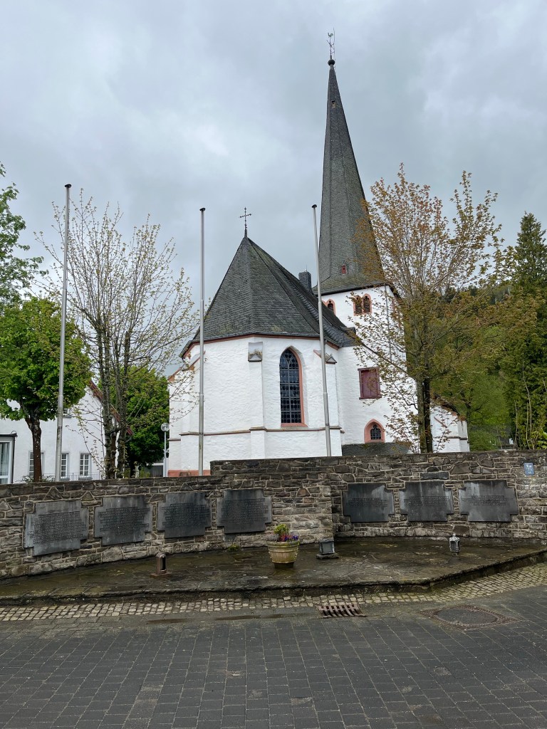 Deze dag begon weer met regen, toen ik de gordijnen van mijn kamer in het erg plezierige Hotel am alten Rathaus (ik had er zo willen blijven) open deed was er geen heuvel te zien. Het stroomde weer. Ik moet eerlijk bekennen dat ik even dacht ‘zal ik nu naar huis gaan?’ Maar besloot toch door te lopen. Morgen moet ik echt naar huis, dan is het 16 km naar de dichtstbijzijnde bushalte, zondag is het nog verder en ik ben ook bang dat het dan erg druk wordt in de treinen ivm de stakingen.