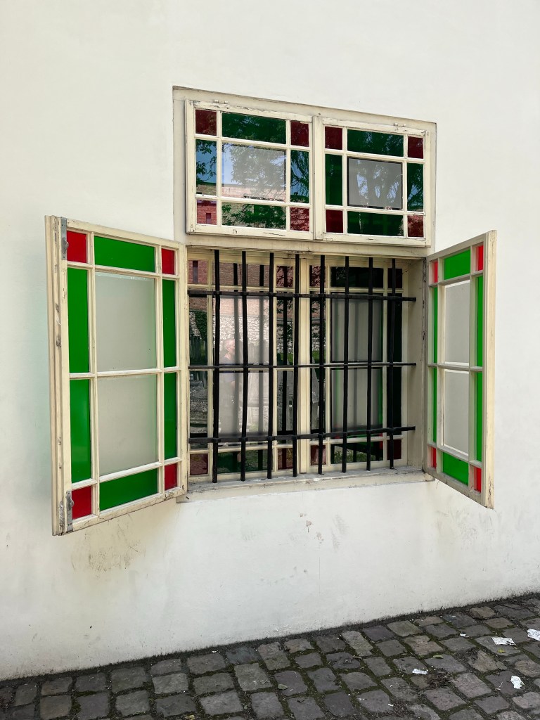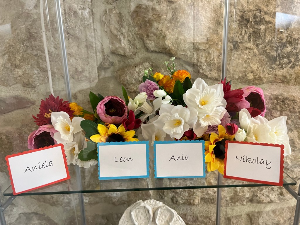 In het winkeltje stond ook een vitrinekast met door kinderen gemaakte papieren bloemen.