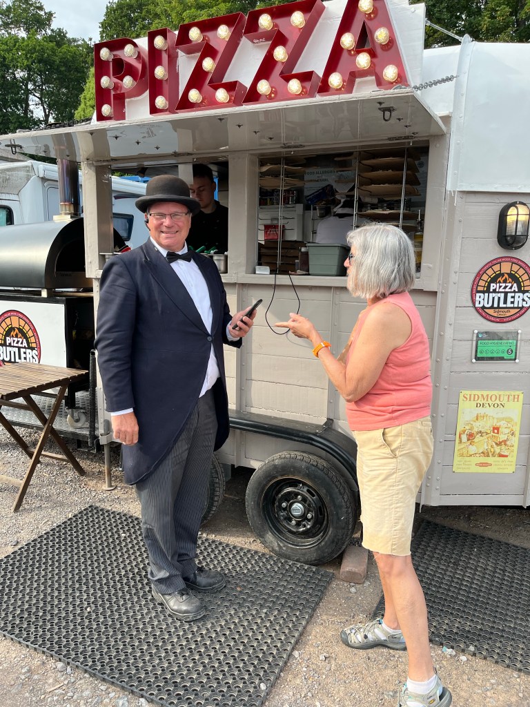 Ze had geen zin om te koken en stelde een gezamenlijke pizza maaltijd voor. De man links op de foto brengt de bestellingen rond. (Wij gingen ze halen)