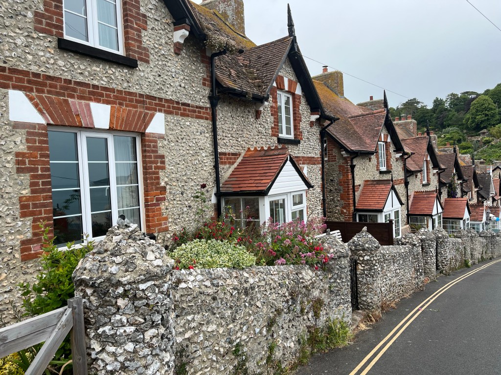 Seaton is dus niks, daarom ter afsluiting een foto van een rijtje huizen in het plaatsje Beer (what’s in a name) waar we vlak voor Seaton doorheen liepen.