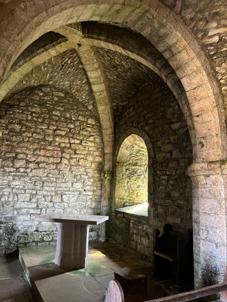 Ik wilde perse de kapel bij St Aldhemhead zien dus liep daar na wat later bleek het laatste kopje koffie voor uren zou zijn, naar toe.