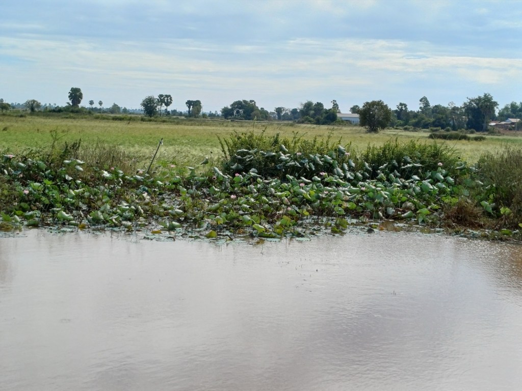 Onderweg veel verdroogde rijstvelden, magere runderen, en veel afval.