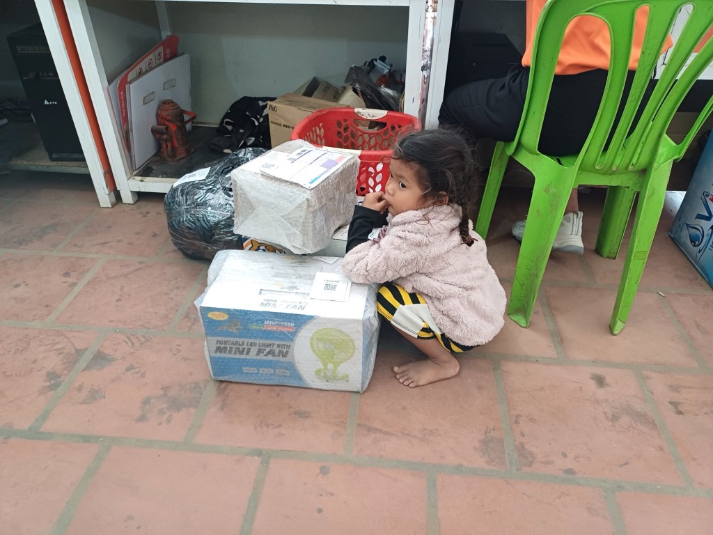 Ik reis verder met een particuliere busonderneming die ook een afdeling pakketten versturen heeft. De moeder van dit meisje werkt er en het kind gaat mee.