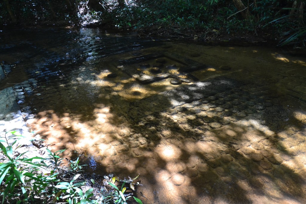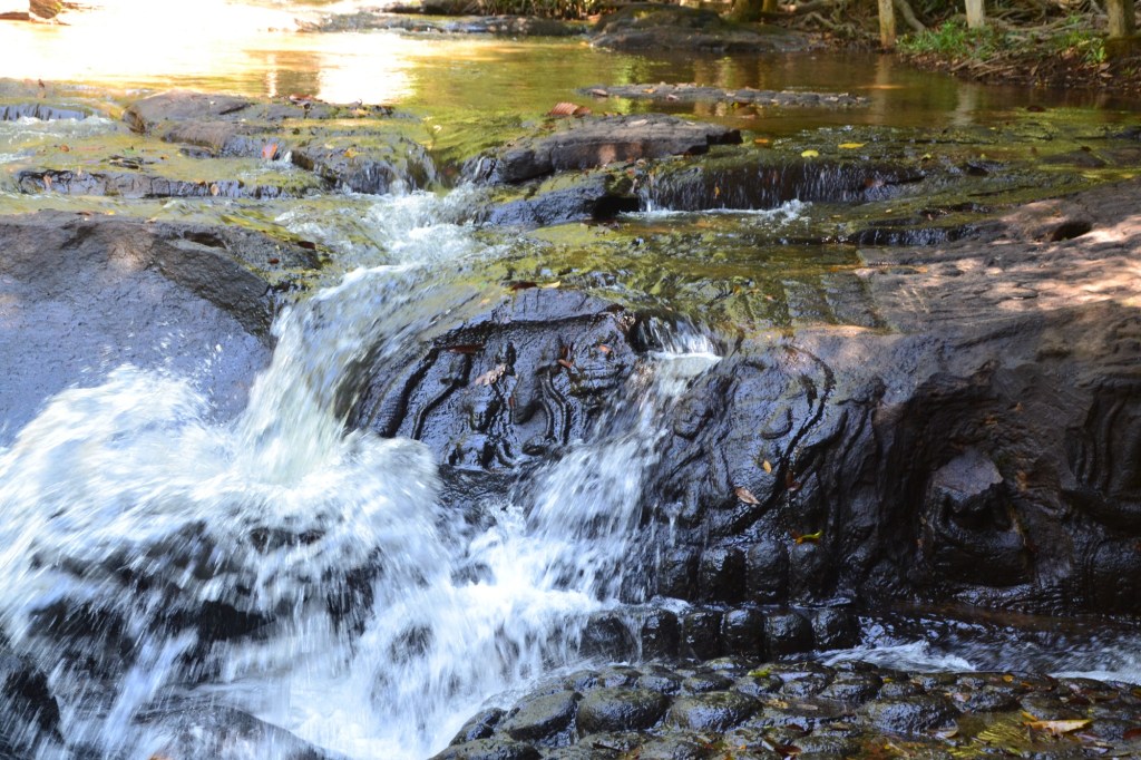 Maar dan heb je ook wat. Het doel was de rivier Kbal Spean. Hierin is een plek waar allerlei voorstellingen van Vishnu en ‘duizenden Linga’s’ op de bodem van de rivier zijn uitgehakt. Dit alles dateert uit de 12e eeuw en is pas in 1968 ontdekt.