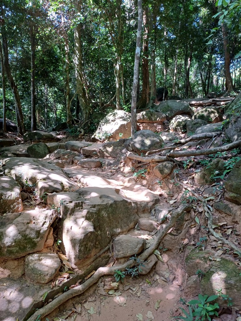 Het was niet helemaal ‘on the foot’, want om het doel te bereiken moest ik 1,5 km door een jungle- achtige omgeving langs een soms moeilijk begaanbaar pad omhoog klimmen.