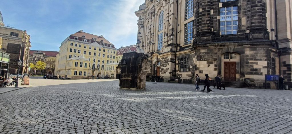 De kerk is bij het bombardement in 1945 helemaal verwoest (net als bijna alles in Dresden), en is na de oorlog weer helemaal opgebouwd, ook nu weer is het ‘net als alles’ in de oude binnenstad.