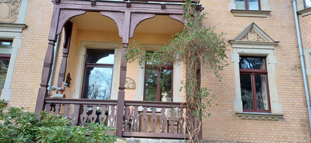 Het is een lange tocht door Dresden met een tram en een bus, het openbaar vervoer is hier goed zo blijkt. Zoals de hele wijk is de boekhandel mooi en oud. Het boekje met de wandeling is uitverkocht, maar ik kreeg veel tips.