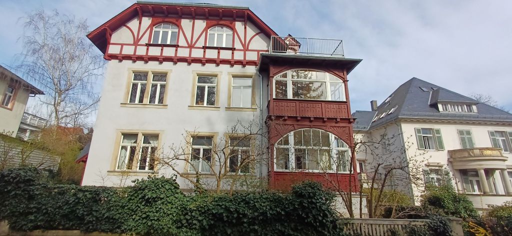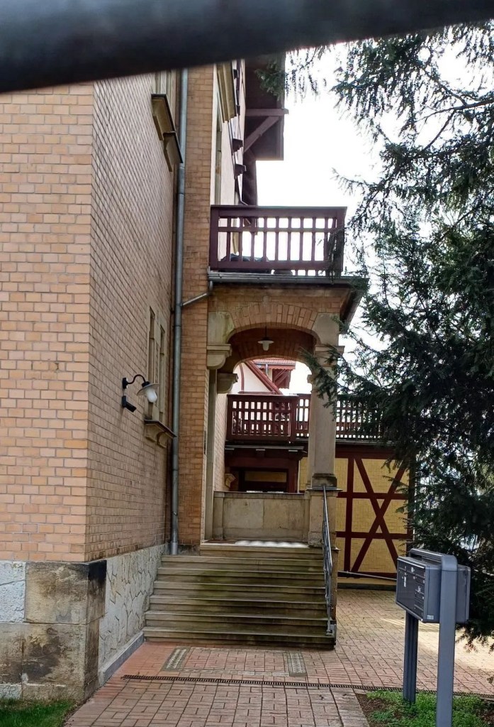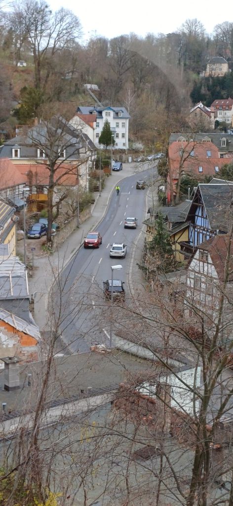 Ik heb vanmiddag heerlijk in de zon door de wijk (vooral klimmend en dalend) gewandeld, met af en toe wat nevelige uitzichten op de Elbe en de bergen in de verte. Er staan hier prachtige oude huizen, ‘allemaal met hun eigen gezicht’ (zoals er in de boekwinkel gezegd werd) en er hadden nog meer beroemdheden gewoond, dus hieronder een kleine selectie.