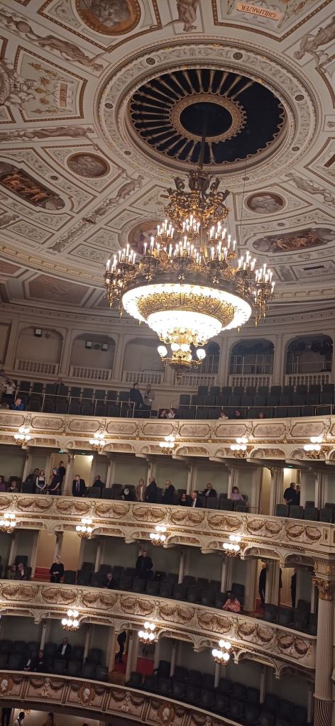 Dat zou je in dit prachtige gebouw waar zoveel te zien is bijna vergeten. Maar hij was prachtig. Ik vind het toch altijd een soort ‘totaal-theater’, prachtige zang, mooi orkest en dan die decors, schitterend!
