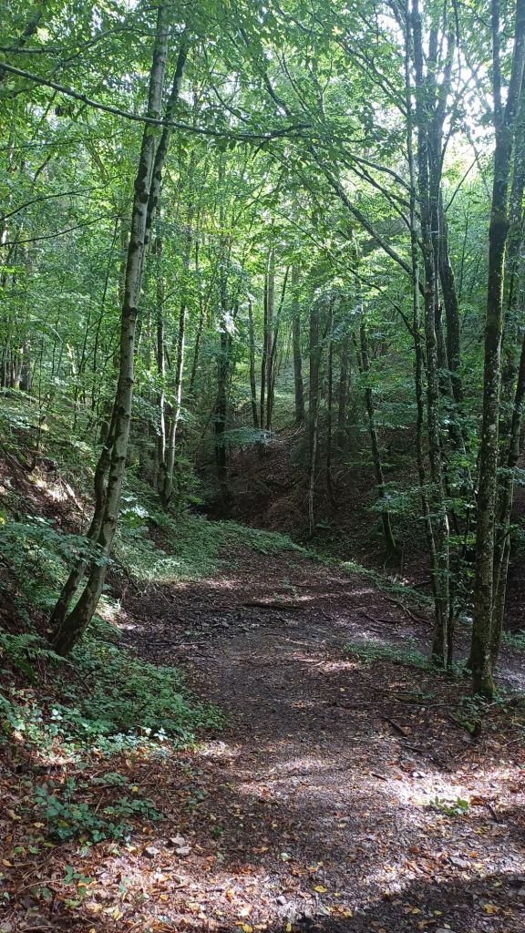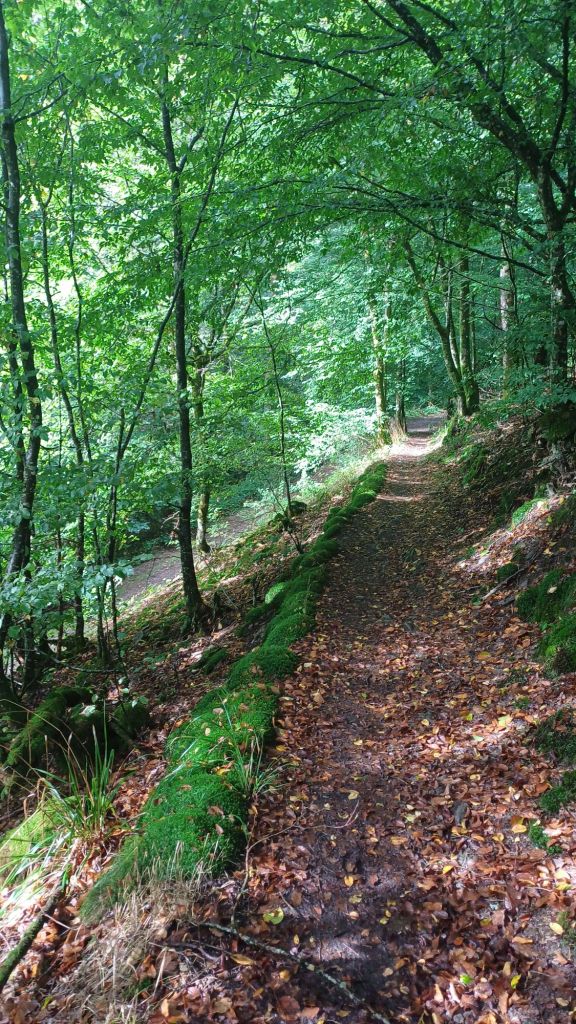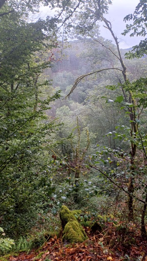 16 van de 18 km van deze dag volgde het pad de rivier de Lieser. Beeldschoon, daar niet van, maar het pad was smal, glad van de regen en het ging steil omhoog en steil omlaag. Over de 16 km deed ik 6 uur.