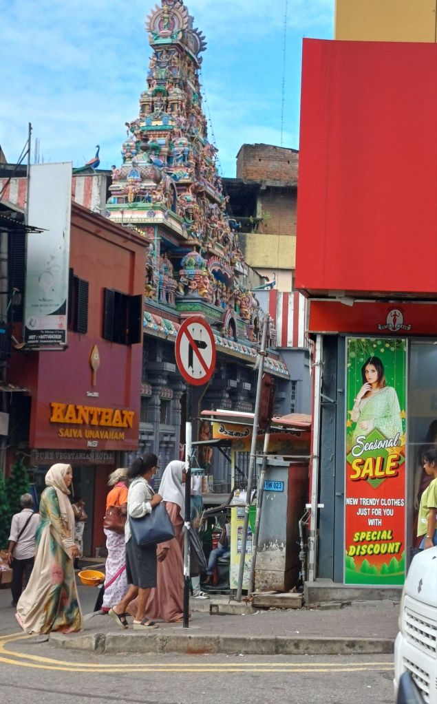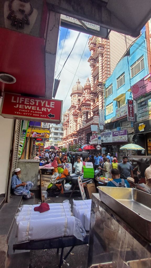 Vandaag maakte ik een wandeling door Pettah. Het gebied aan de haven waar de eerste kolonisten zich vestigden. Hier wonen al die groepen al eeuwen door elkaar. Zij bouwden hier hun residentie’s, godshuizen en vooral winkels. Pettah is nu een enorme chaotische bazaar. Heerlijk om door heen te wandelen dus.