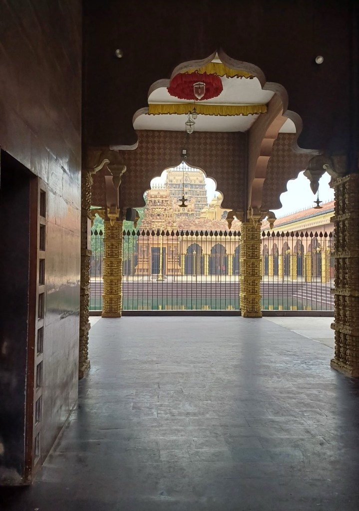 Binnen zijn alle zuilen ook goudkleurig. En op allen is een groot plakkaat geplakt: verboden te fotograferen. Dat heb ik dus maar niet gedaan…..zo’n god van de oorlog.
