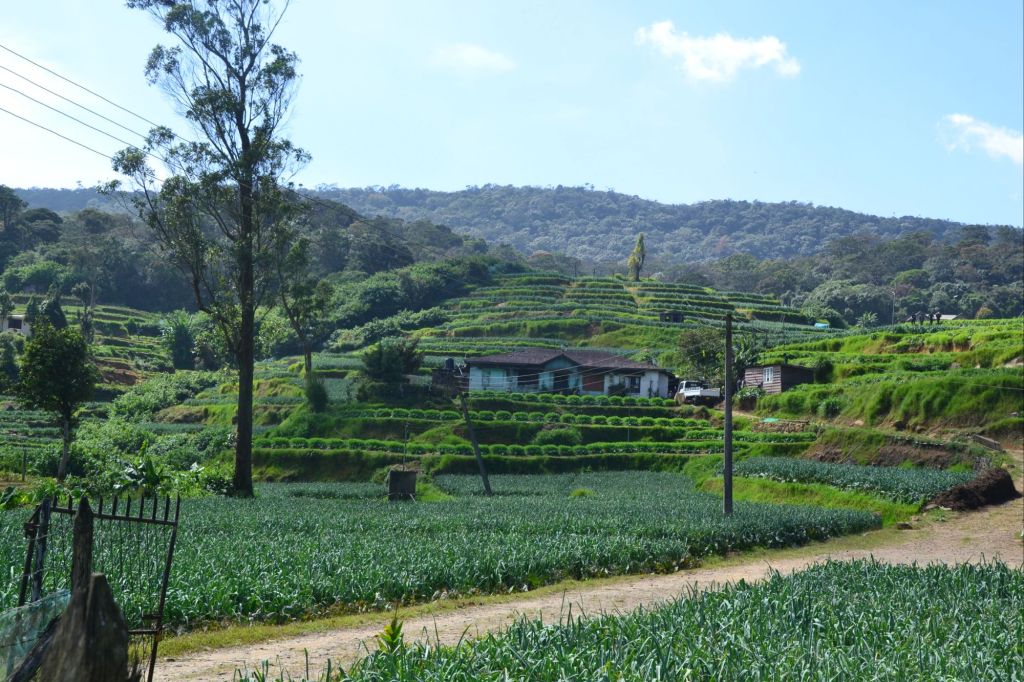 Op deze hoogte is het klimaat subtropisch. Overal zie je bewerkte stukjes land, prei is hier de grote favoriet. De groentes worden direct in stalletjes langs de weg verkocht. En ook die zalige aardbeien.