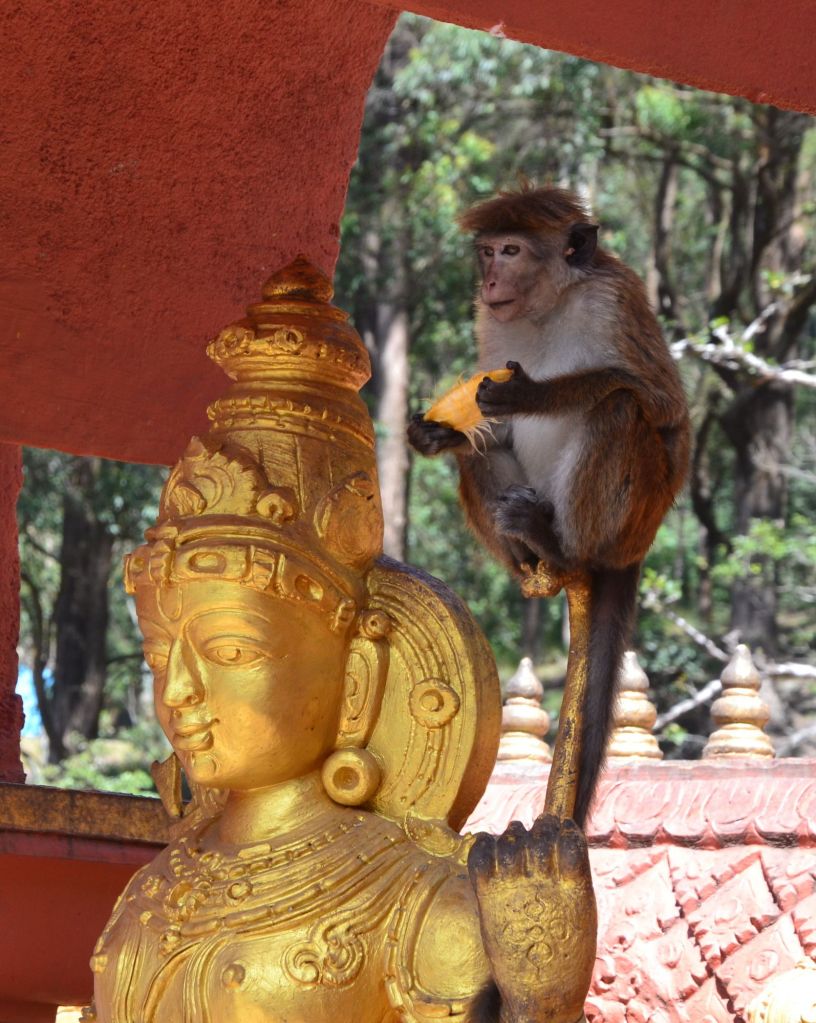 Er zijn dus heel veel aapjes in en op dit tempeltje.