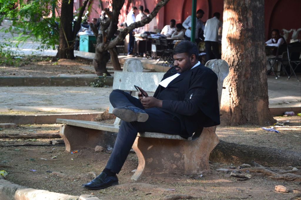 Tegenover het Vidhana Soudha is het gerechtsgebouw, ook in mooie Anglo-Indiase stijl. Ik kreeg het niet goed op de foto.