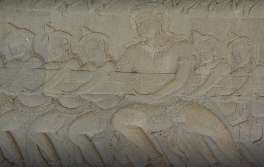 Volgens de legende karnden de goden met behulp van een slang de oceaan van melk, hieruit steeg een kruik (kumbh) op, gevuld met nectar die hen onsterfelijk maakte.