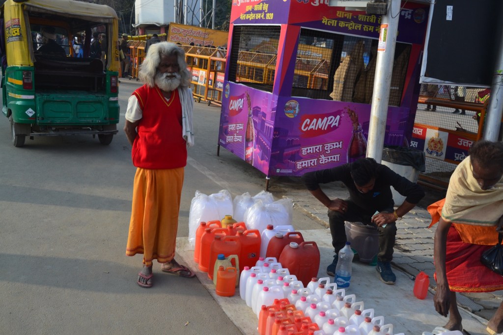 Overal langs de kant van de weg zijn waterflessen te koop, om het heilige water mee naar huis te nemen voor hen die de tocht (en dip) niet kunnen ondernemen.