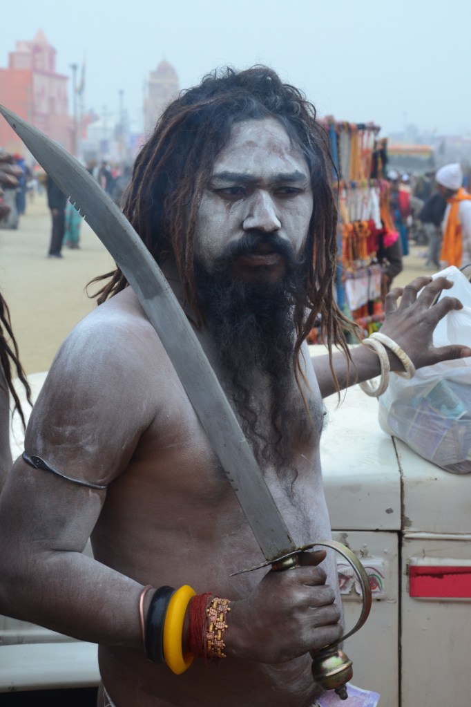 Vroeger, toen er nog veel meer rondtrekkende saddhu’s waren, werden ze vaak aangevallen of hadden ze onderling ruzie. Daarom was er een ‘verdedigingssekte’ die toen zwaar gewapend en getraind was.