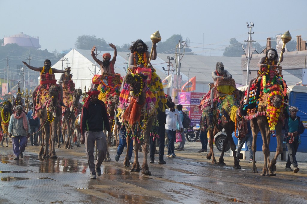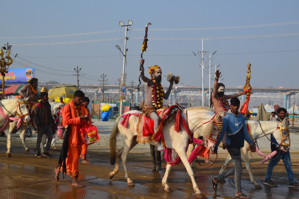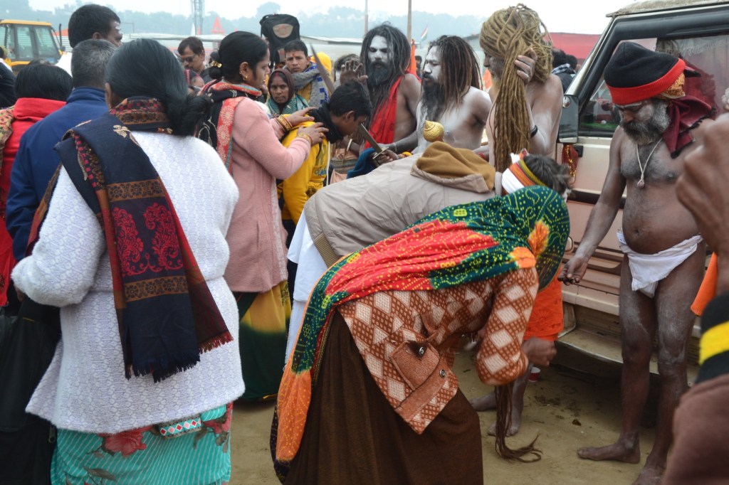 Vroeger was de Kumbh bijna uitsluitend voor de verschillende saddhu-sekten. Op de Kumbh vond de initiatie plaats en ontmoetten ze elkaar. (En dat bad natuurlijk). In de loop der tijd zijn er op deze belangrijke data en plaats steeds meer ‘gewone mensen’ bijgekomen die ook een dip in de Ganges nemen. De saddhu’s zijn gebleven en worden door de mensen als ‘heilige’ beschouwd. Dus na de dip ook nog een zegening.