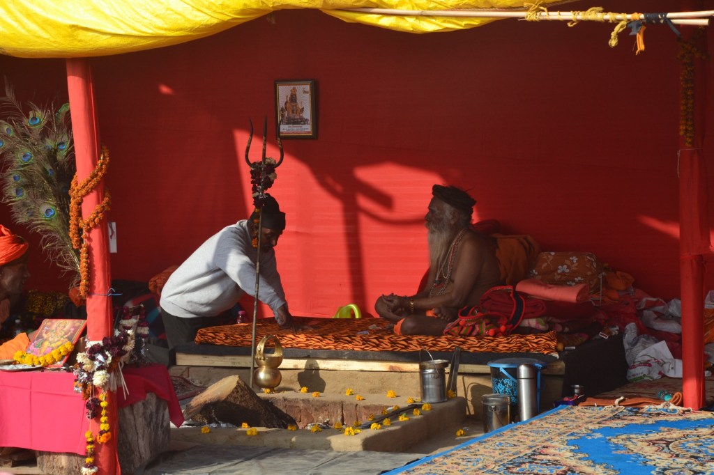 De saddhu’s hebben ieder een eigen tent waar in ze ‘audiëntie’ houden.