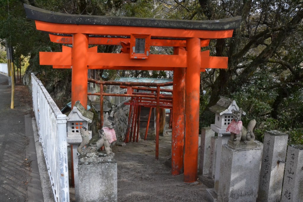 Bij het verlaten van de bebouwde kom liepen we langs deze mooie tori’s. Deze oranje-kleurige poorten markeren een Shinto schrijn. Vaak is deze schrijn een soort huisje, waar een kami in woont, ik noem het altijd ‘een kami-huisje‘. (Daar moet je natuurlijk dan wel in geloven, maar ook zonder dat zijn vooral de toegangspoorten erg indrukwekkend).