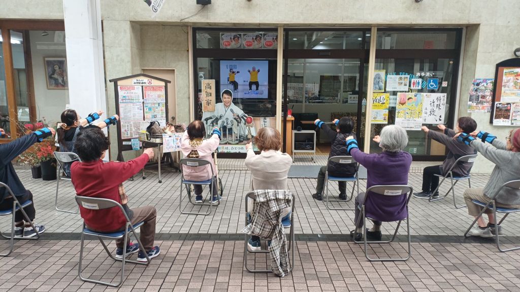 In Shimanto aangekomen liep ik door de overdekte hoofdstraat. Hier volgde een groepje dames ‘Japan in beweging’.