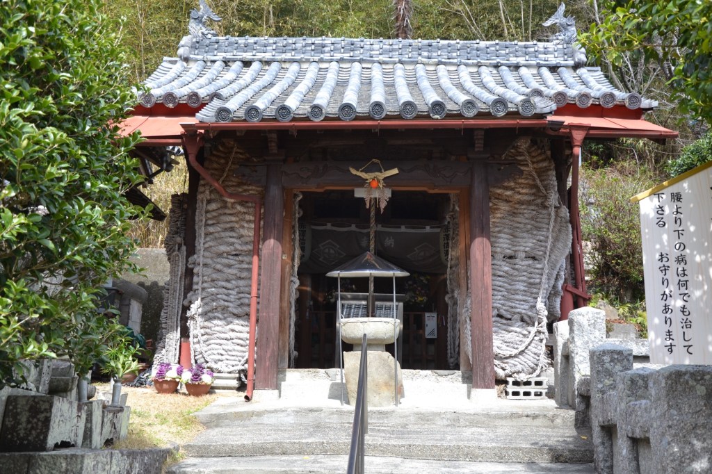 Deze tempel is ongetwijfeld aan Kobo Daishi als pelgrim gewijd. Het lijkt wel of het tempeltje van (touw)sandalen gemaakt is.