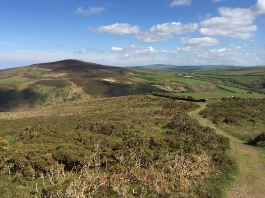 Zicht op de Great Hangman vanaf de Little Hangman. De beklimming hiervan was niet zwaar (steil), ware het niet dat ik er op het einde van de dag aankwam en dat er veel valsplat te gaan was. Tussen de kleine en de grote Hangman is een diepe vallei, die doorkruist moet worden, waarbij het pad over een beekje gaat. The Great Hangman is het hoogste punt van het pad en 1 van de hoogste punten van het land.