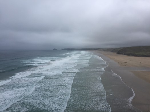 Maar het allermooiste moment was voor mij op 16 mei, op weg naar Perranporth. Het was een lange dag en er was regen voorspeld. Die bleef eerst weg. Maar het begon al snel, eerst druilerig, te regenen. Ik passeerde de plek waar je het restaurant van Jamie Olivier kon zien liggen: