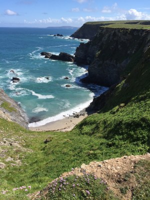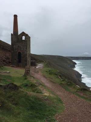 Het hoogste cliff van Cornwall (10 dagen later) was iets minder hoog, maar steiler en het regende, waardoor het pad glibberig was.